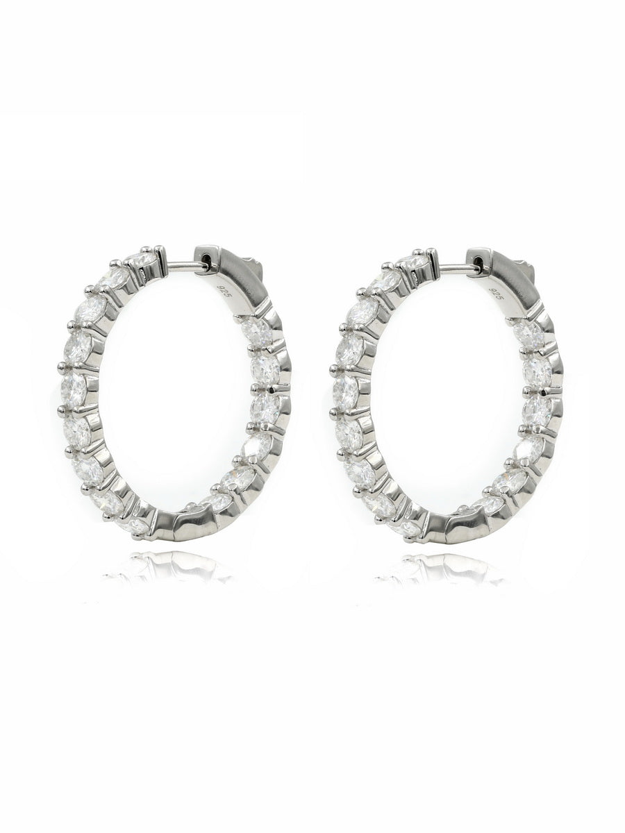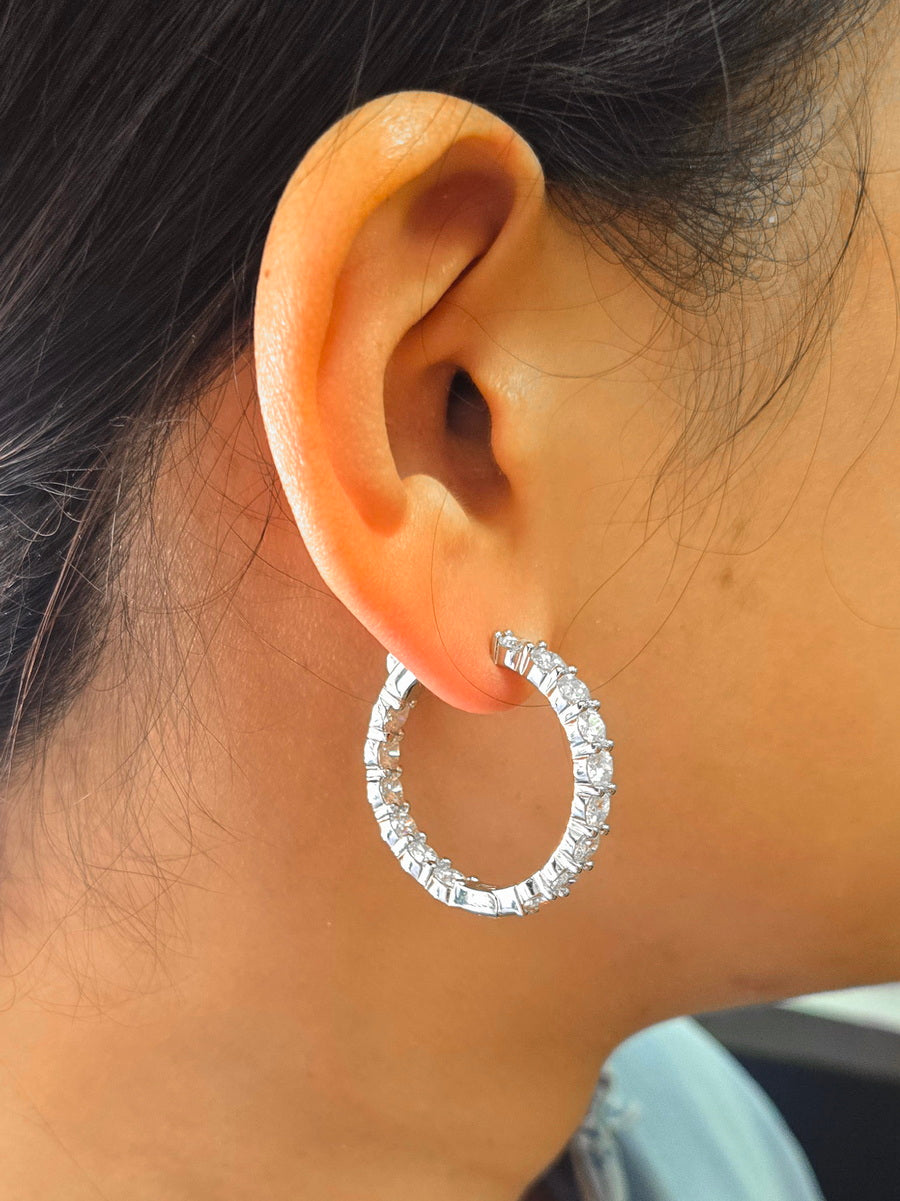 - Classic hoop earrings adorned with dazzling round-cut stones, radiating sparkle from both inside and out. They are the pinnacle of sustainable luxury.