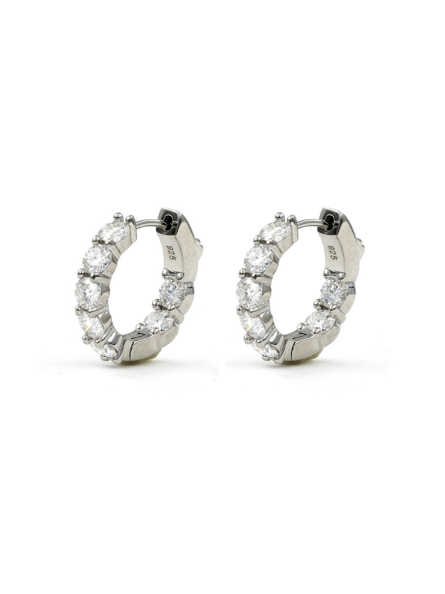 - Classic hoop earrings adorned with dazzling round-cut stones, radiating sparkle from both inside and out. They are the pinnacle of sustainable luxury.