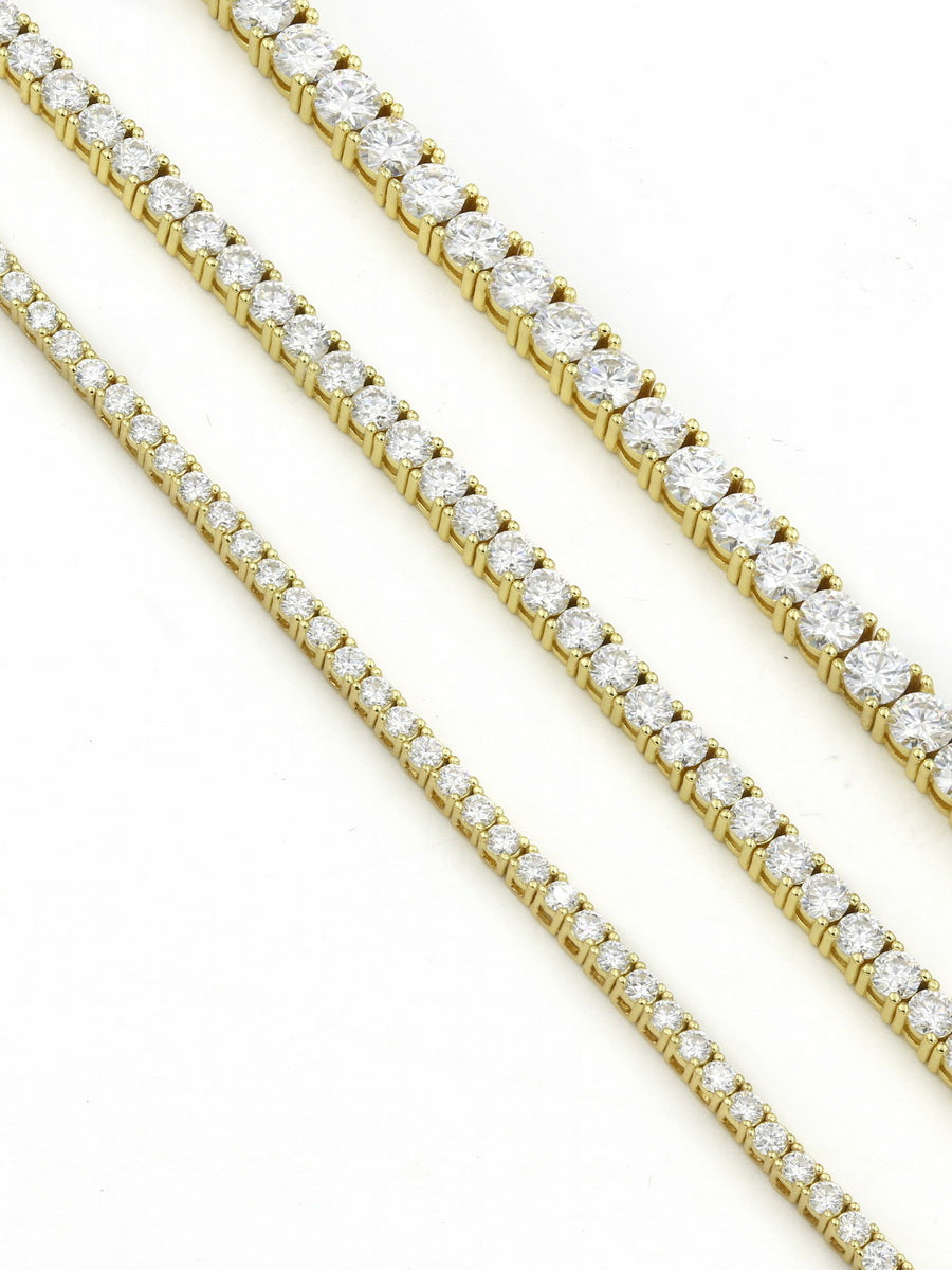 - You will treasure this timeless tennis bracelet for a lifetime. The wrist is adorned with round-cut moissanite gemstones, each elegantly placed in a four-prong, glossy 925 sterling silver setting.