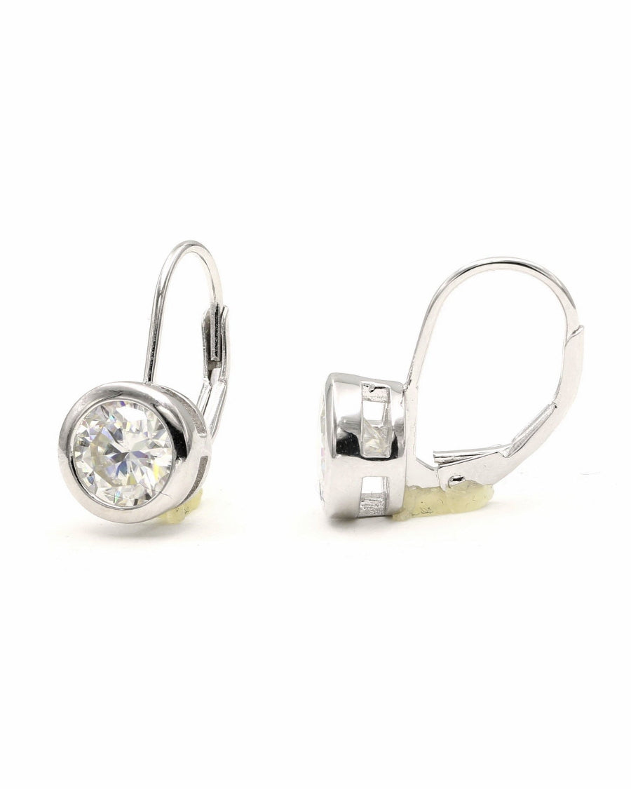 925 Sterling Silver Round Bezel Dangel Moissanite Earrings